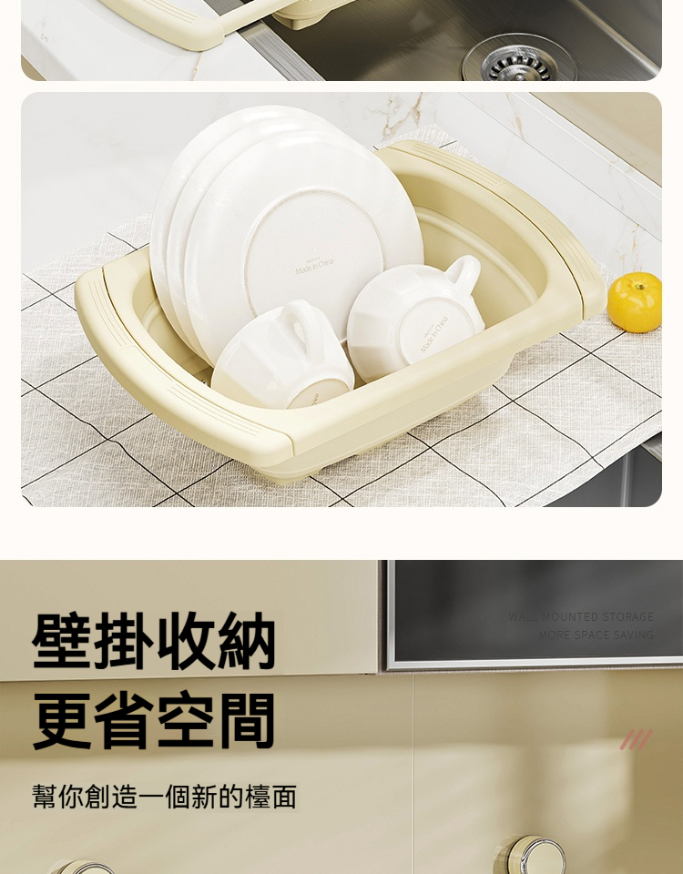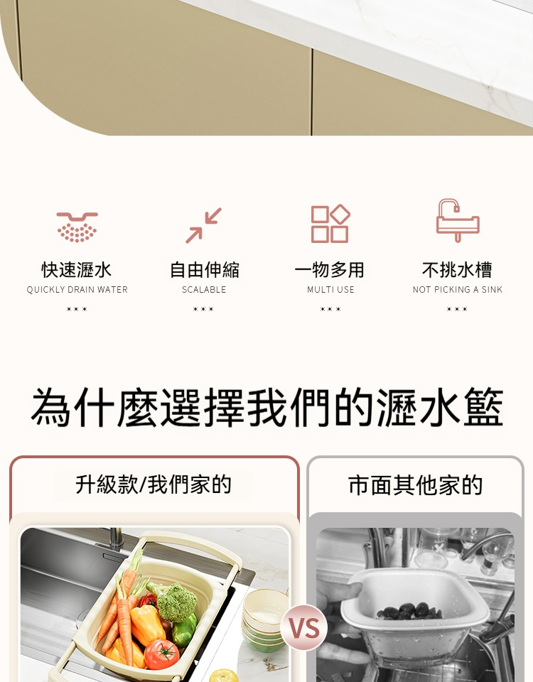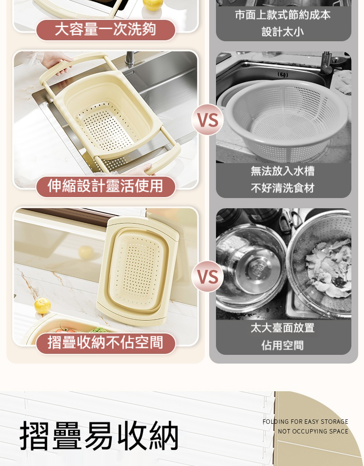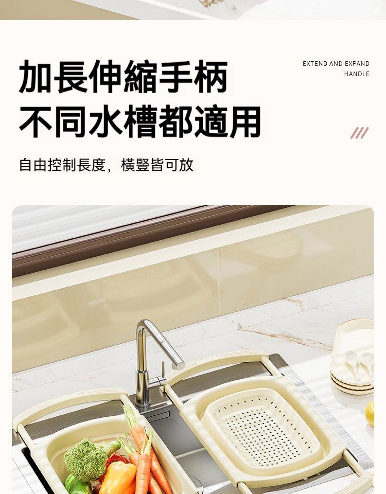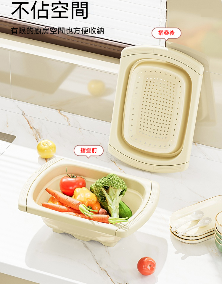🌟【三大實用亮點】🌟▫️ 伸縮設計:自由調節長度,完美適配各種水槽尺寸🧩▫️ 雙層瀝水槽:濾水不積水,洗菜洗水果都方便🍎▫️ 可折疊收納:節省空間不佔位,旅行露營也能帶走🚗